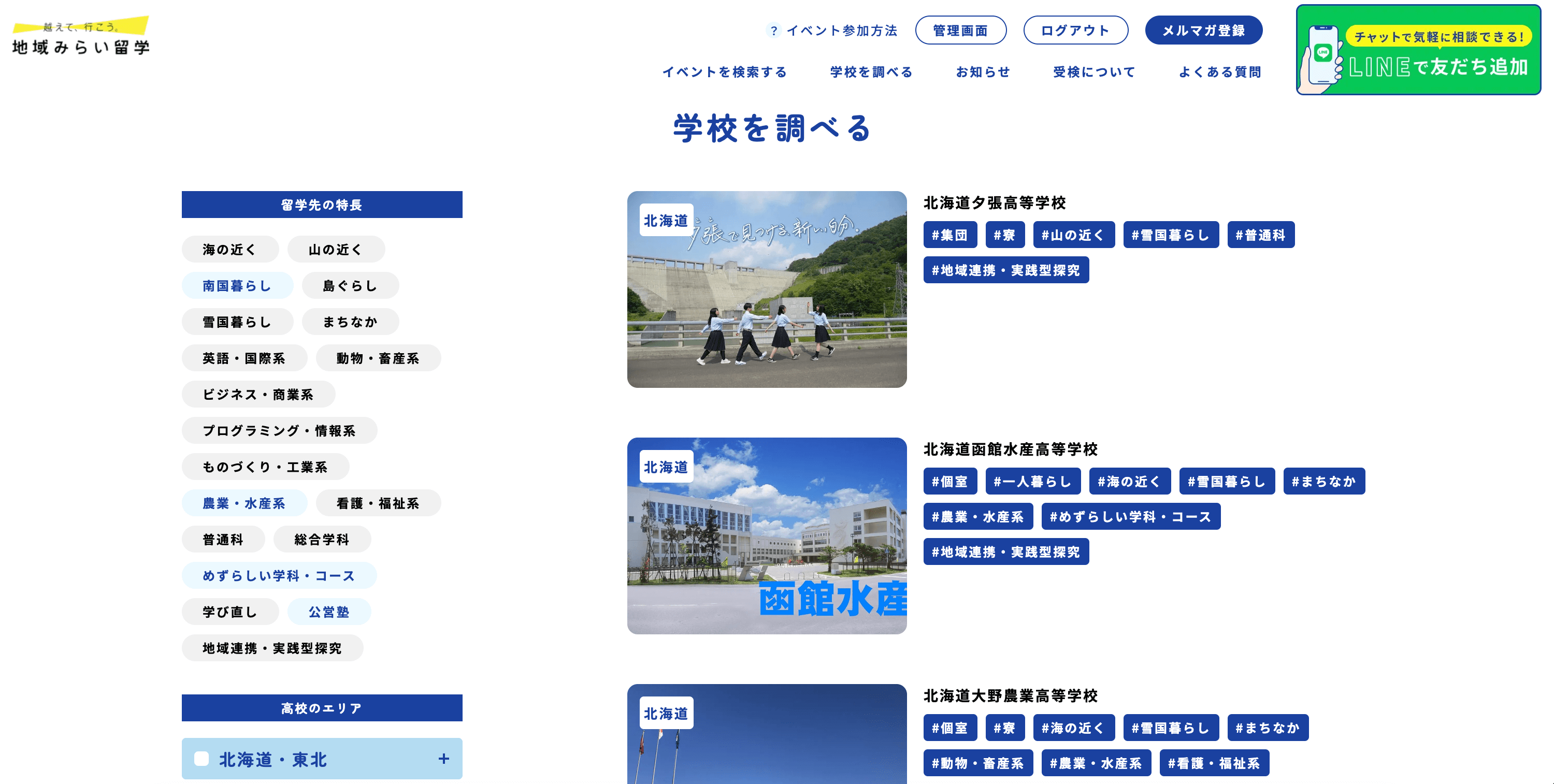 全国169校の詳細情報も掲載されており、地域の魅力や住まいのタイプ、卒業後の進路まで比較できます。