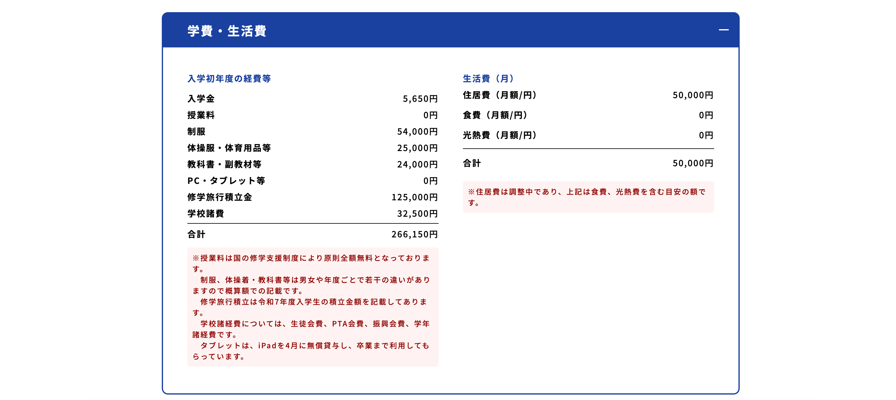 ※掲載している内容は、とある高校の内容であり、高校ごとに金額や明細が異なります。必ず、ご自身の気になる高校ページでご確認ください。