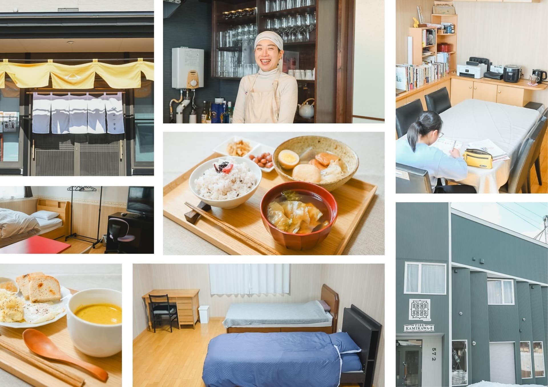 男子(シェアハウス)の寮費は、43,500円/月額。女子(個室)の寮費は、49,000円/月額となります。 寮の住居費の食費は、週5回 朝/夜のみが含まれます。 別途の食費は、給食費+自炊費(週2回)の目安とします。昼食は(上川町給食)317円/食で利用できます。
